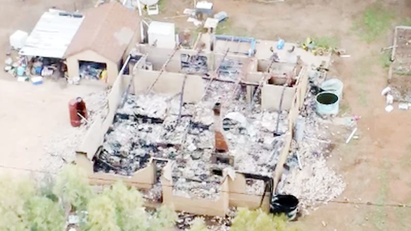 وقال للشرطة ان رجلين مسلحين ببنادق افقداه الوعي وكانا يحملان الى جانب البنادق سكاكين وفؤوساً، وانه وجد منزله محترقاً وامرأتان وطفلان مفقودان.