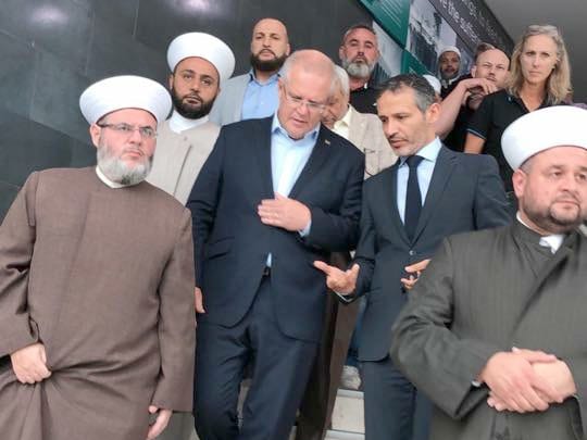 وفي سيدني، زار رئيس الوزراء سكوت موريسون مسجد لاكمبا والتقى مفتي أستراليا ومجلس الأئمة ورئيس وأعضاء الجمعية الإسلامية مستنكراً ومقدماً التعازي بالضحايا، ووصف رئيس موريسن المهاجم بأنه “شخص عنيف متطرف من اليمين”. ورافق موريسن وزيرة الدفاع الأسترالية ماريز باين.